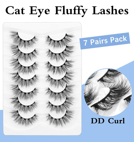 Fox Eye Lashes, Dramatic Lashes, Wispy Fluffy False Mink Lashes, Dramatic Cat Eye 18Mm Natural Look Fake Eyelashes, 7 Pairs Pack