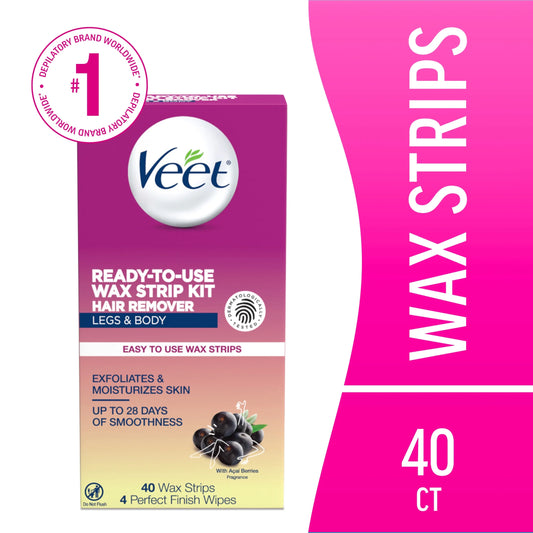 Hair Removal Wax Strips with Shea Butter, Body Hair Remover for Women, Sensitive Skin, 40 CT