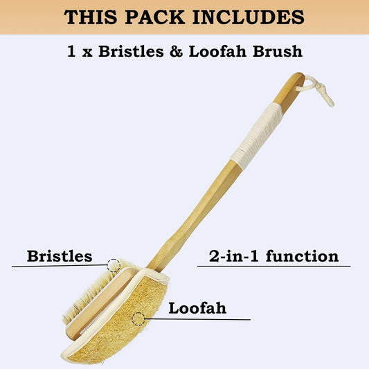 Loofah on a Stick, Back Scrubber for Shower,Long Handle Dual-Sided Body Brush, Exfoliator for Bath or Dry Brush,Deep Cleansing of Skin.