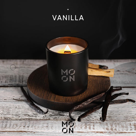 Luxury Candles for Home by | Wood Wick Candles | Candles Vanilla |Vanilla Candles for Men | Non Toxic Candles | Vanilla Black Candles |