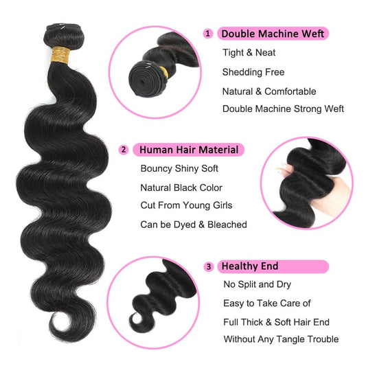 Human Hair Bundles 16 18 20 22 Inch Body Wave Bundles Human Hair 12A 100% Unprocessed Brazilian Virgin Human Hair 4 Bundles Human Hair Body Wave Human Hair Bundles Natural Color Human Hair Extensions