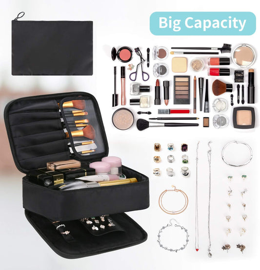 Makeup Bag and Jewelry Bag for Women, Large Make up Bag Organizer with Compartments Waterproof Makeup Bag and Jewelry Bag for Women (Black)